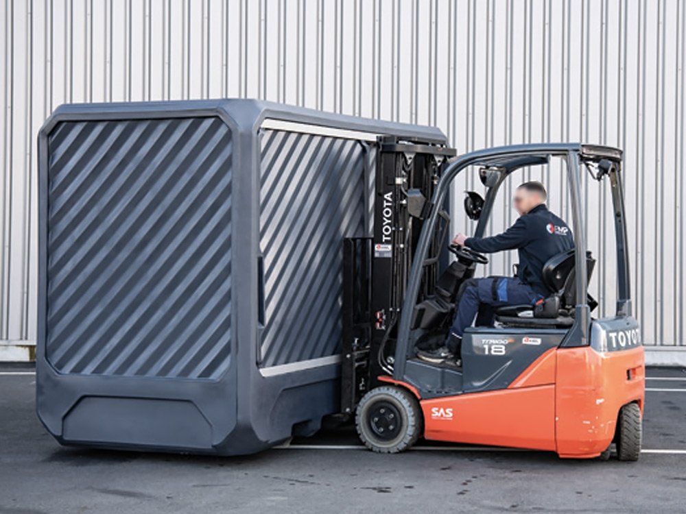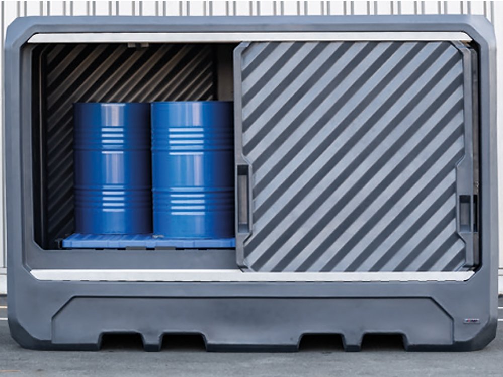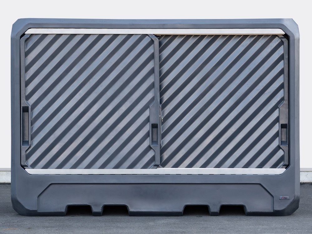 Le CONT3M-PEHD est doté de 2 portes coulissantes et possède une large ouverture pour faciliter l’accès aux IBC.