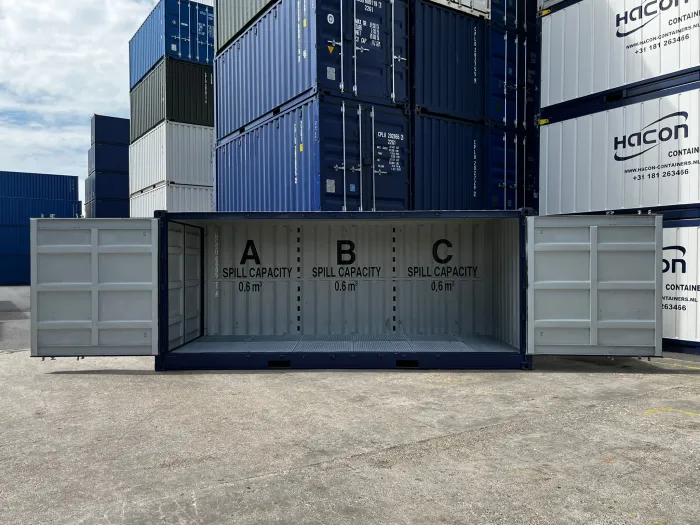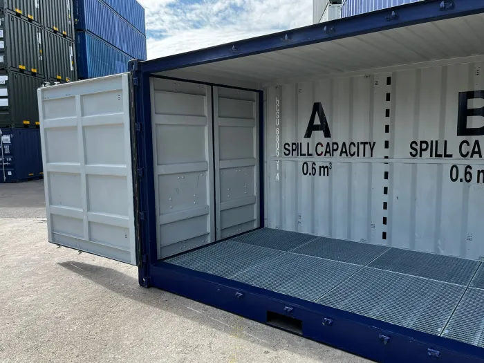Le conteneur à égouttoir à côté ouvert de 20 pieds est le plus grand conteneur à égouttoir de notre sélection. Ce type de conteneur est spécialement conçu pour le stockage de substances nocives. Ce conteneur ventilé est équipé d’un bac de rétention intégré, recouvert d’un plancher en treillis. Outre les portes de conteneur standard sur la tête, ce conteneur est pourvu de portes de conteneur sur tout un long côté, ce qui rend ce type de conteneur facilement accessible sur le côté. En outre, ce conteneur répond aux exigences de la CSC et aux normes ISO. Ce type est à vendre et à ren