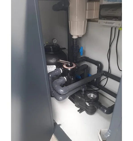 Conteneur de piscine transportable SANS LICENCE 5M25x2M55x1M26, dimensions intérieures 4M15 x 2M25 (version hors sol). Poids de la piscine vide : 1150 kg. Piscine sans installation, équipée d’un système de filtration (1 skimmer, 2 buses de refoulement et d’évacuation, 1 projecteur LED blanc avec télécommande, 1 filtre à sable Ø 400 mm – 6,5 m³). /h offre une finesse de filtration de 40 à 50 microns avec vanne 6 voies (sable fourni), motopompe 0,5 CV, 1 coffret électrique). Toutes les machines sont placées dans le local technique. Le revêtement est commercialisé (gris clair 75/100) et se compose d’une membrane haute performance, peinte côté eau, qui offre une résistance et une protection contre le vieillissement dû aux rayons ultraviolets, contre l’abrasion et les rayures et contre les taches. contre les micro-organismes, contre les attaques et les salissures côté eau.